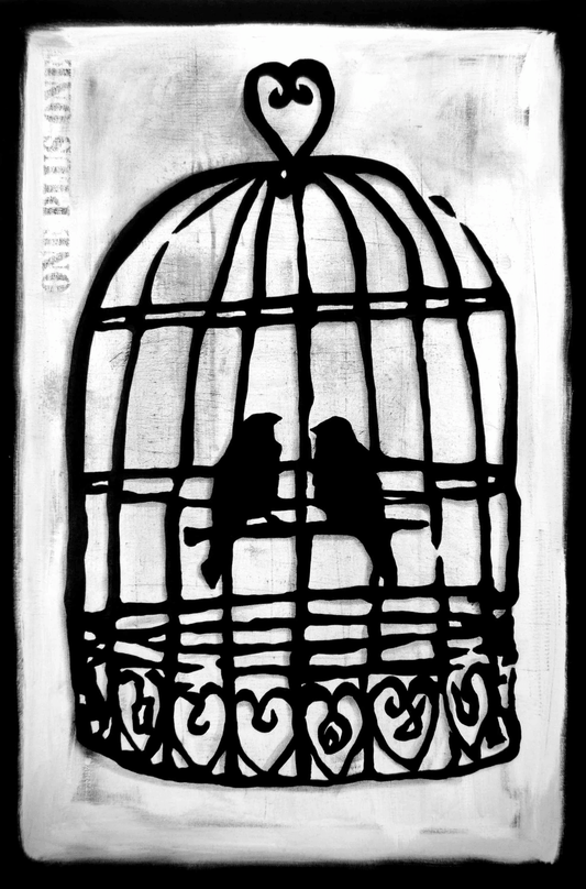 Abstract art print Modern Home Decor Canvas Love birds - One Plus One
