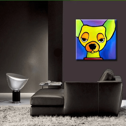 Original Abstract painting Modern pop Art colorful portrait green yellow dog - Dare Me