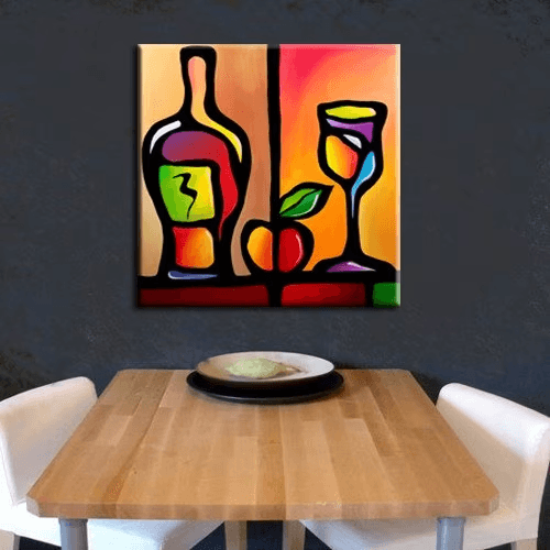 Original Abstract painting Modern pop Art large colorful cubist wine - Tasty