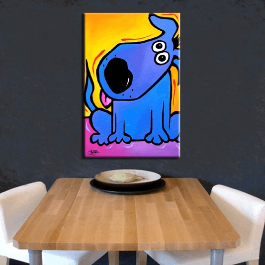 Original Abstract painting Modern pop Art Portrait blue dog - Stay