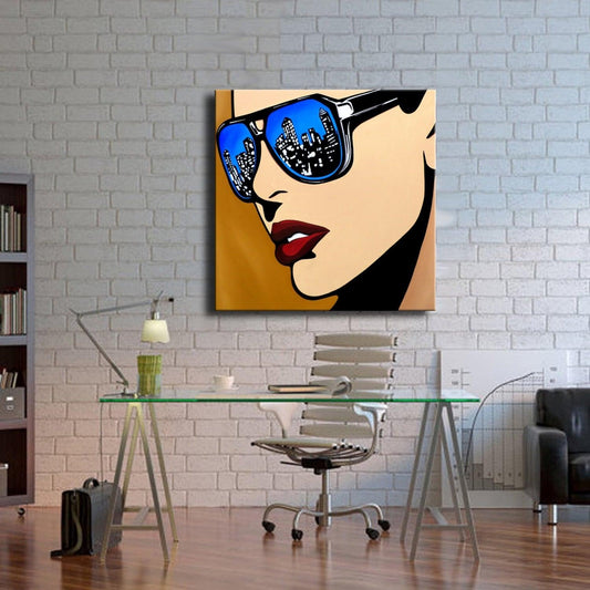 Abstract Pop Art painting colorful city blue huge woman portrait - Urban Vision