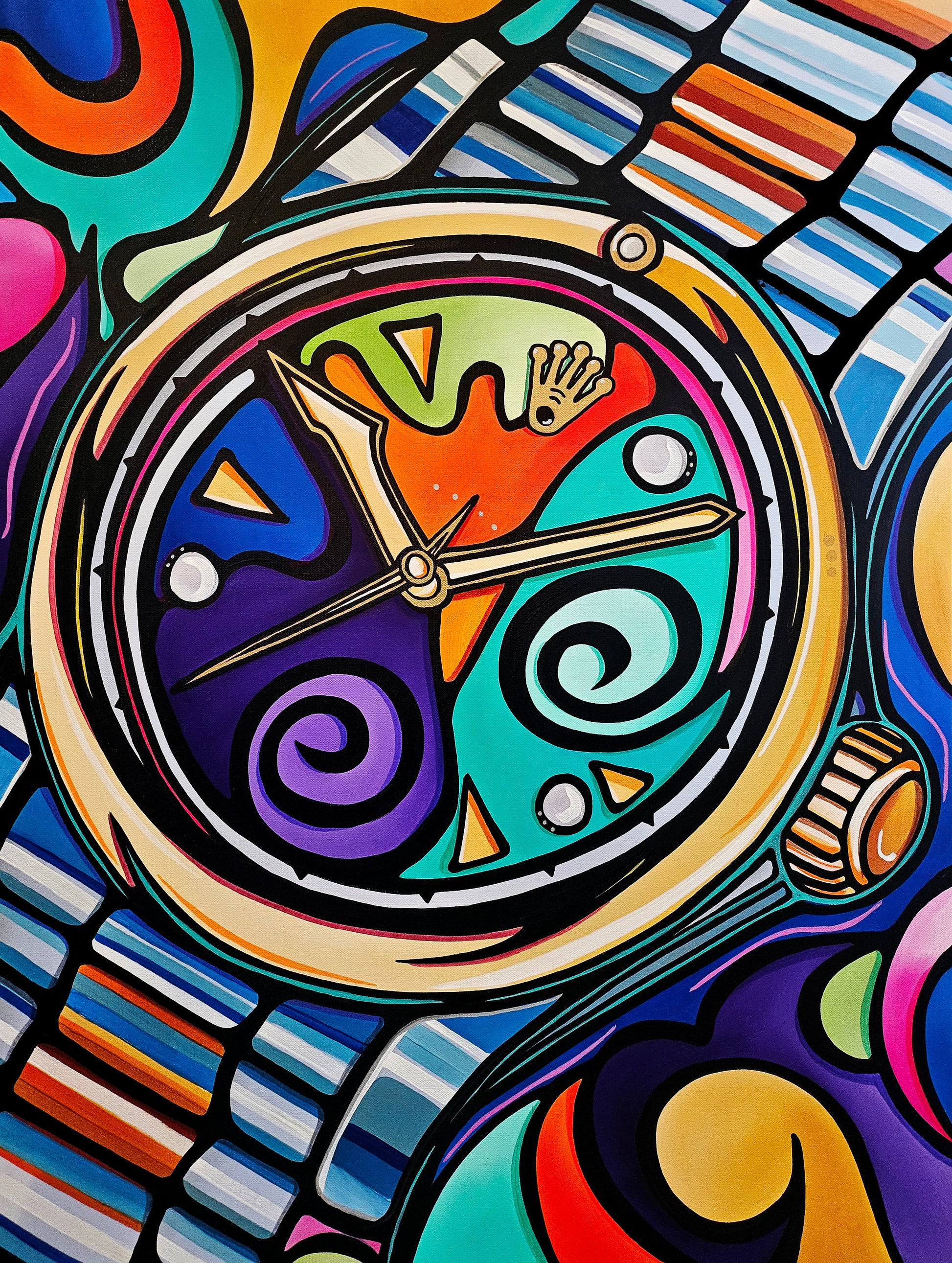 Abstract art original colorful cubist collage watch painting - Swiss Made